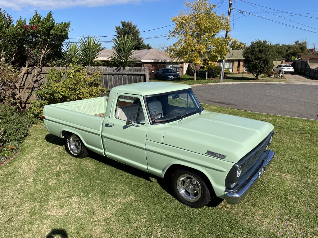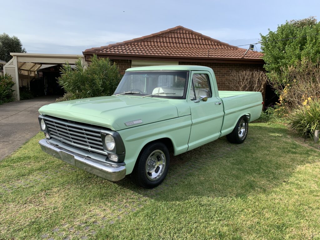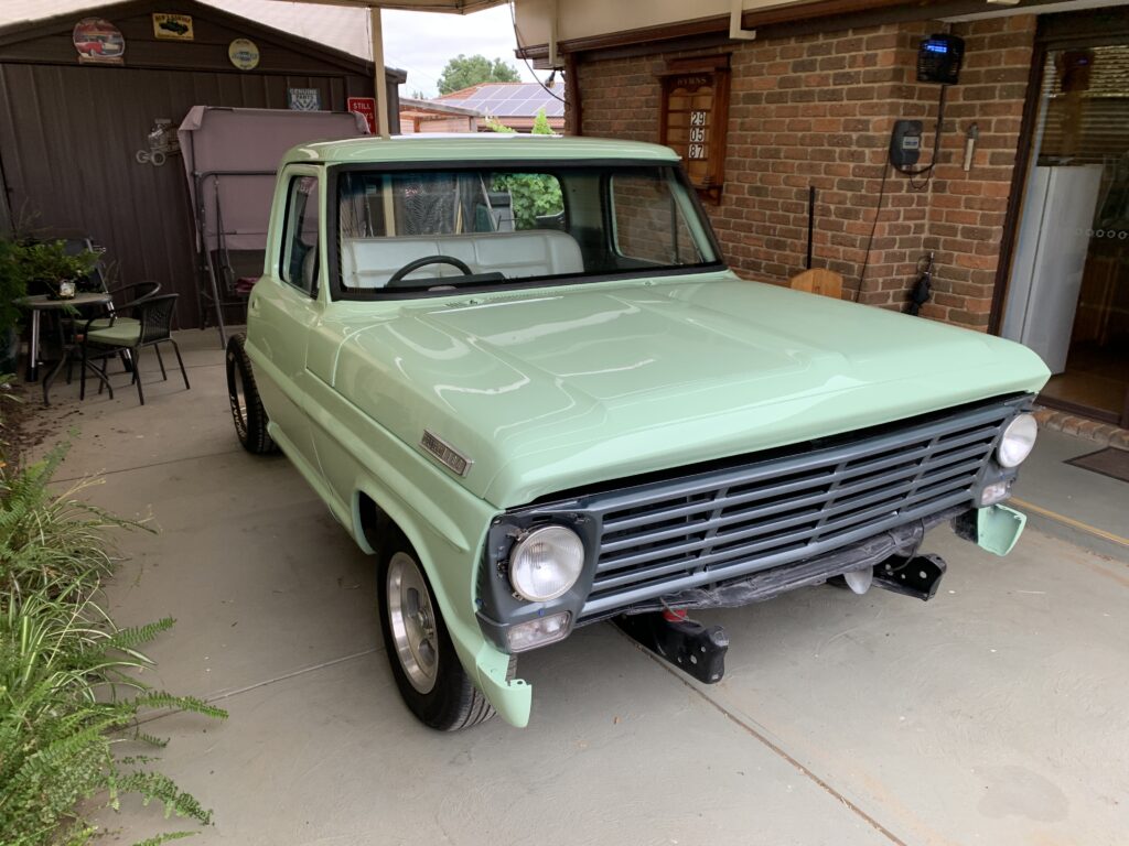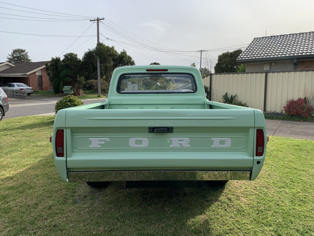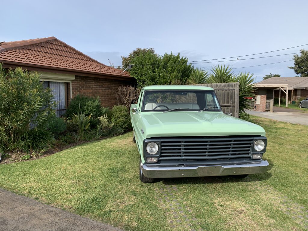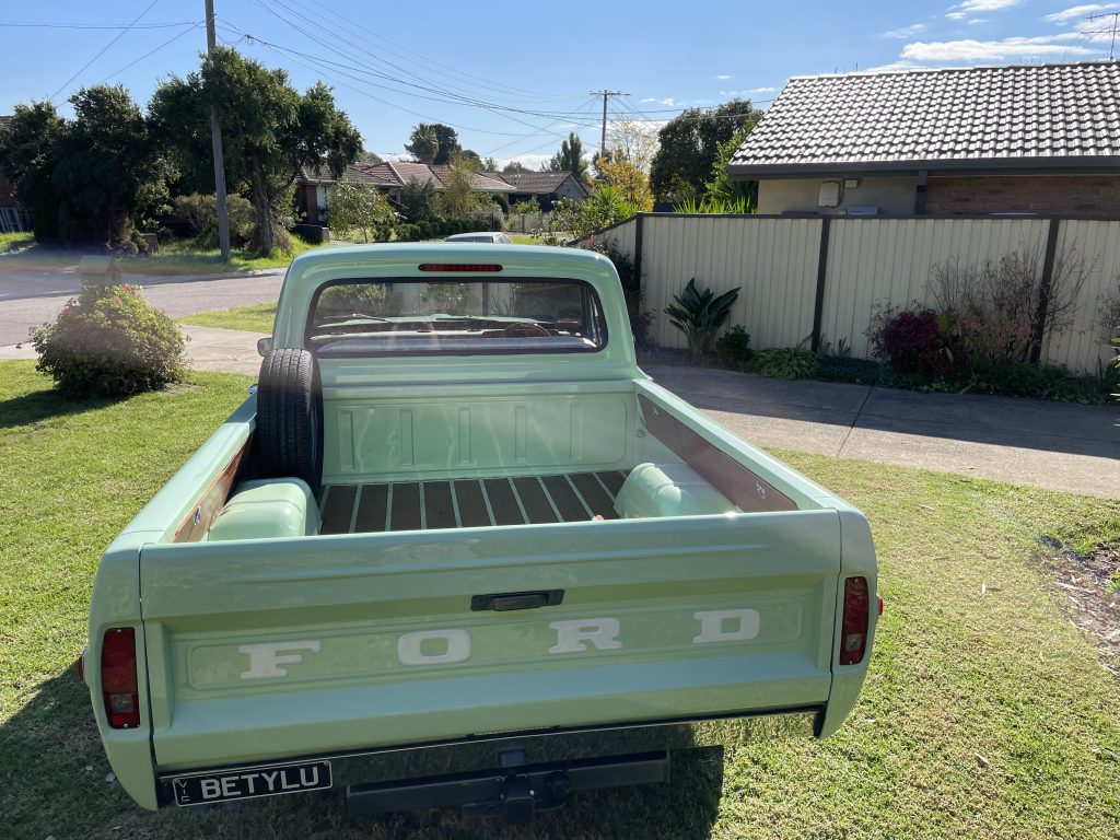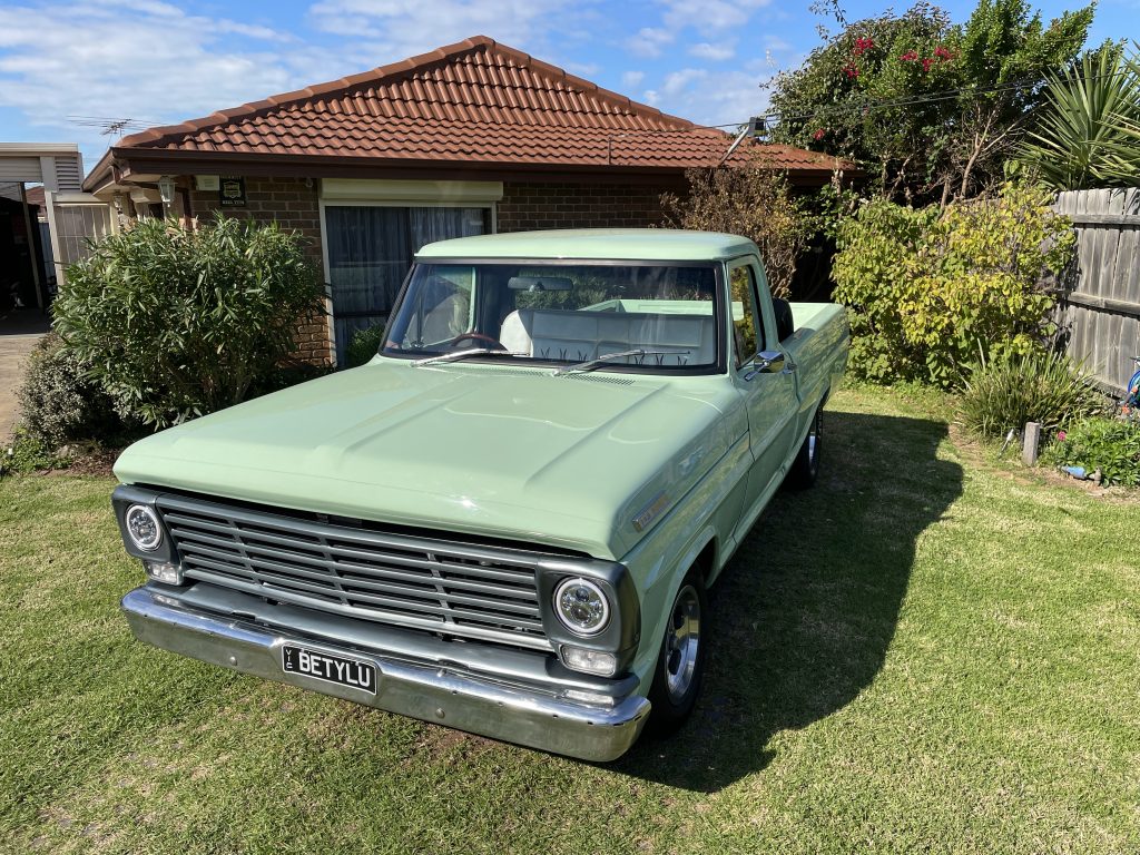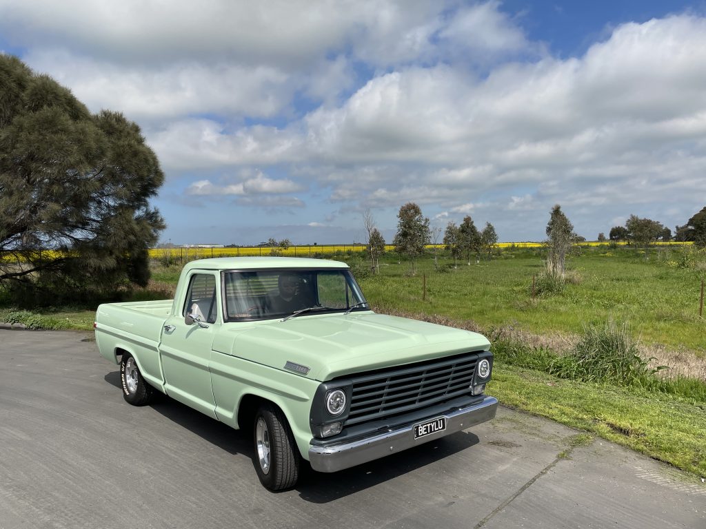 In 2012, the 1969 Ford F100 Styleline (also called a Bump Side) came home from a paddock in Buangor (near Arrarat, Victoria) where it had been sitting for quite a while. A full ground up restoration was started with which included upgrading the engine, transmission and brakes. The engine/transmission came from a 1996 Falcon XG Ute. The rear tub was finished with Tassie Oak reclaimed floorboards and the interior was restored/customised to include all the mod cons… After 8 years, the F100 is now registered and on the road.