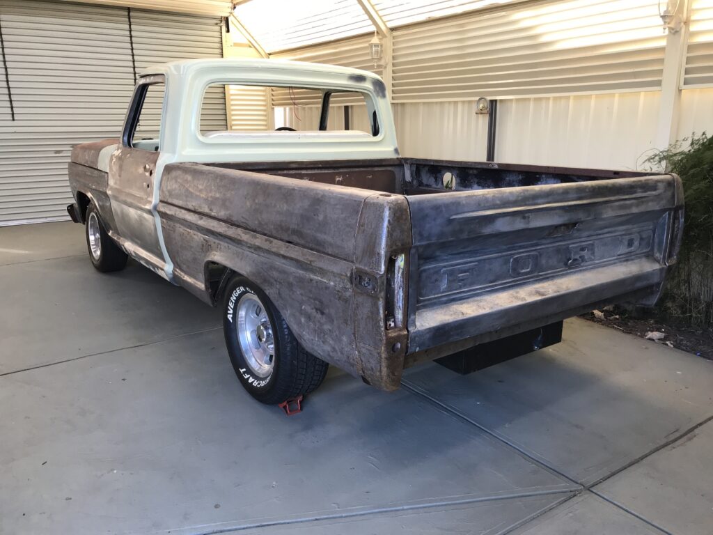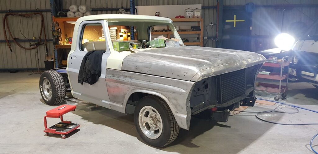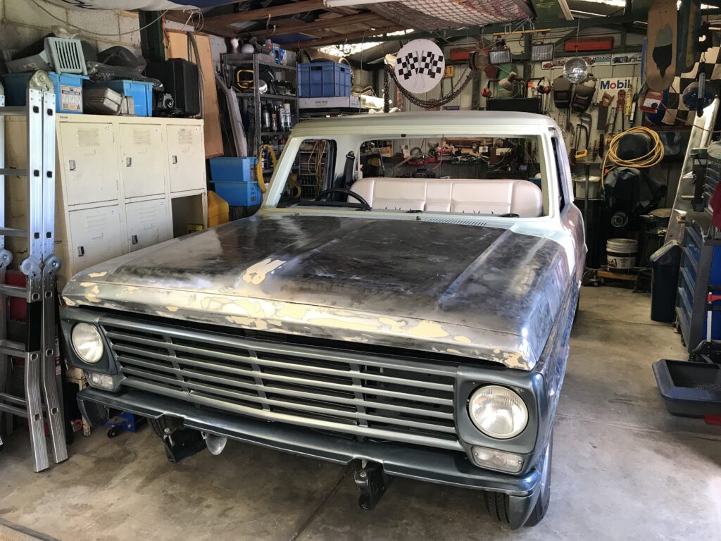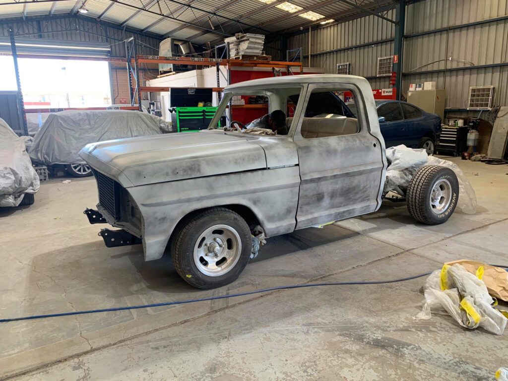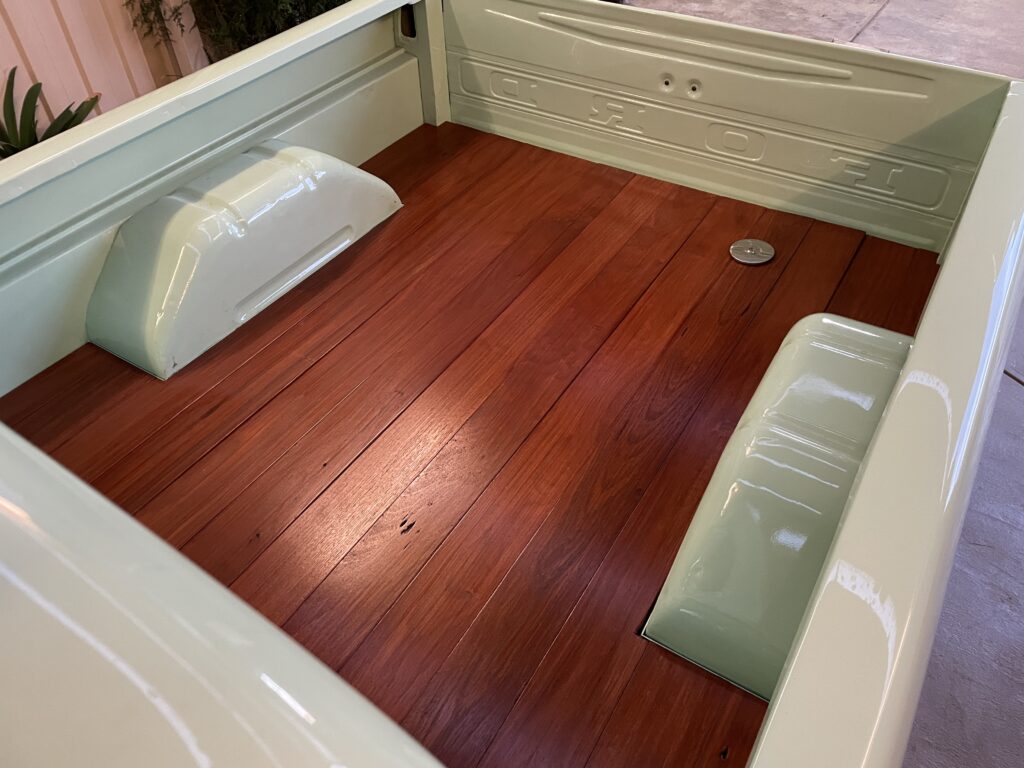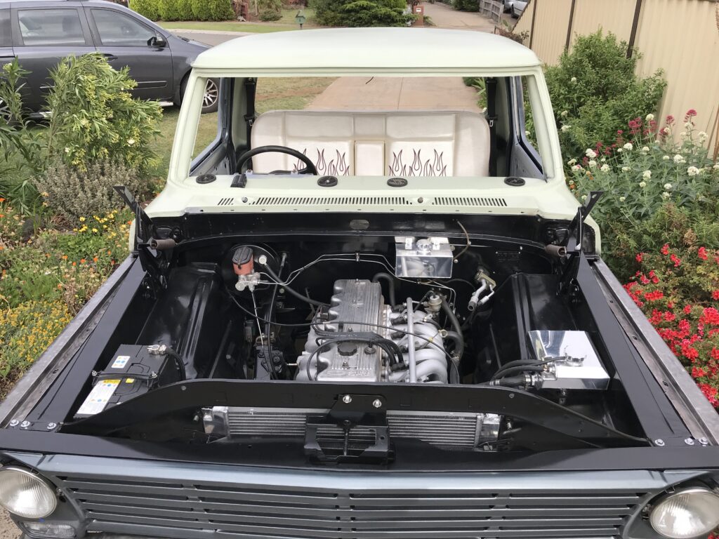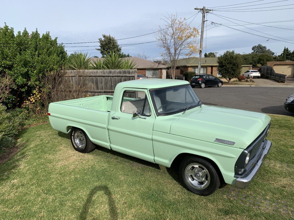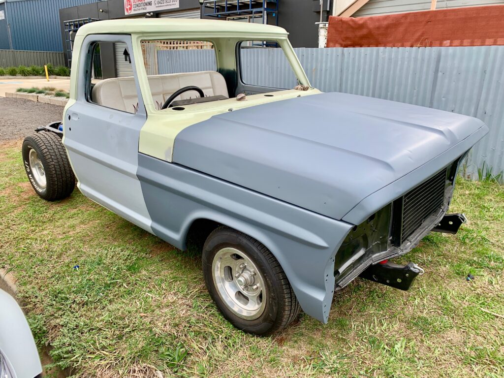 In 2012, the 1969 Ford F100 Styleline (also called a Bump Side) came home from a paddock in Buangor (near Arrarat, Victoria) where it had been sitting for quite a while. A full ground up restoration was started with which included upgrading the engine, transmission and brakes. The engine/transmission came from a 1996 Falcon XG Ute. The rear tub was finished with Tassie Oak reclaimed floorboards and the interior was restored/customised to include all the mod cons… After 8 years, the F100 is now registered and on the road.
