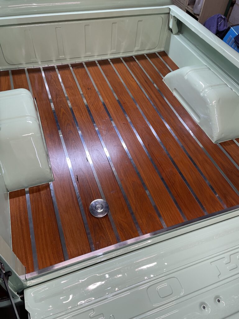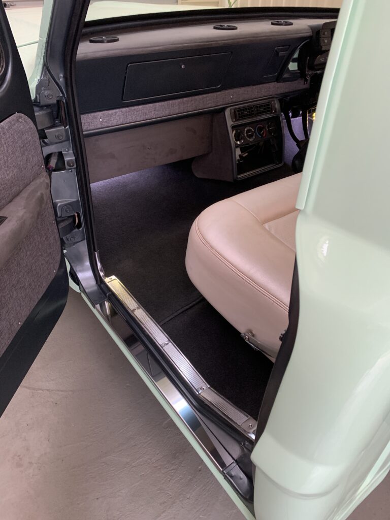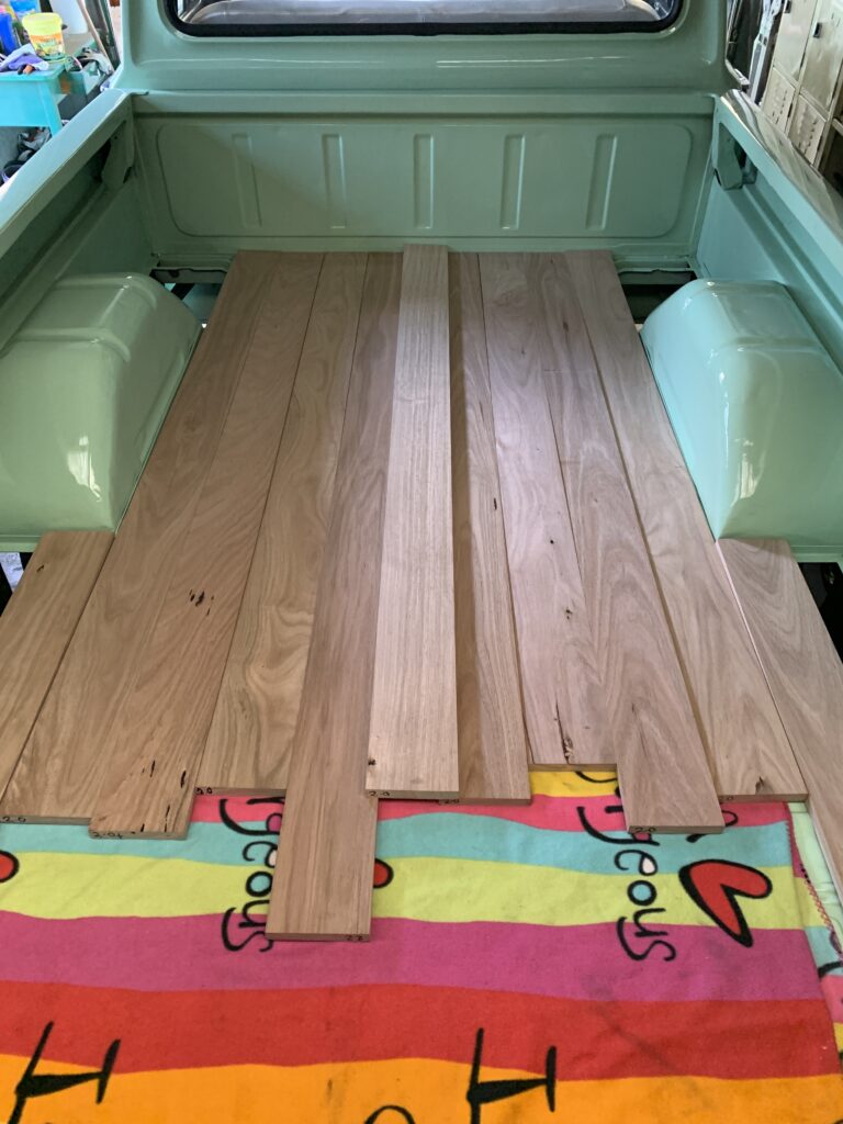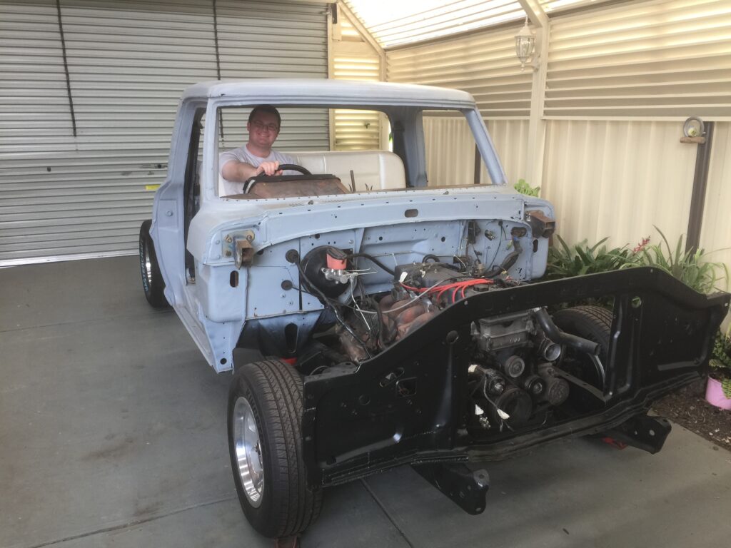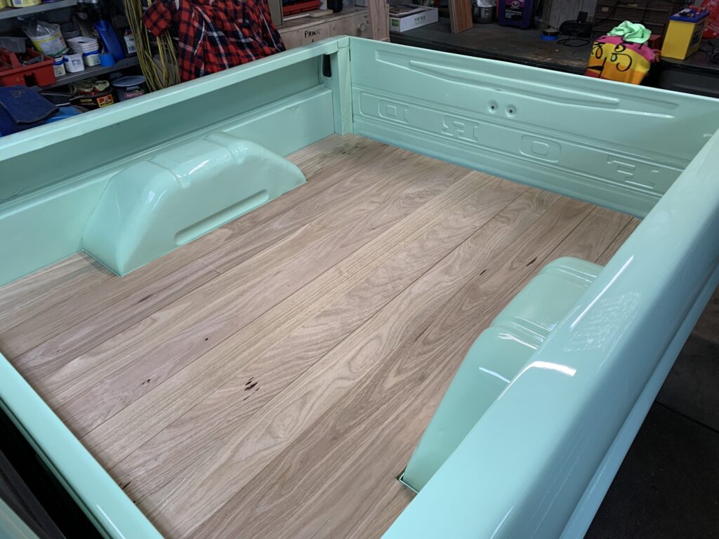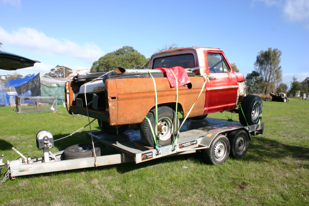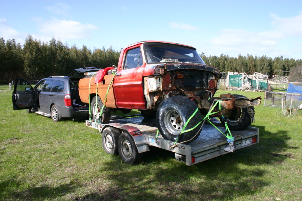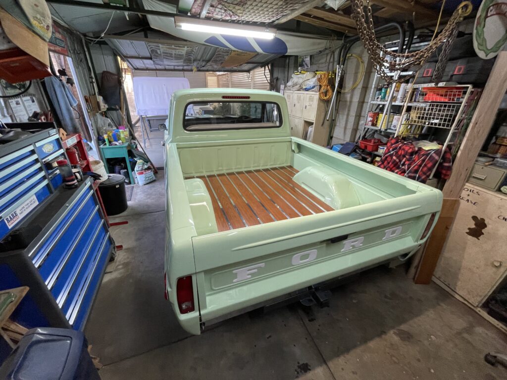 In 2012, the 1969 Ford F100 Styleline (also called a Bump Side) came home from a paddock in Buangor (near Arrarat, Victoria) where it had been sitting for quite a while. A full ground up restoration was started with which included upgrading the engine, transmission and brakes. The engine/transmission came from a 1996 Falcon XG Ute. The rear tub was finished with Tassie Oak reclaimed floorboards and the interior was restored/customised to include all the mod cons… After 8 years, the F100 is now registered and on the road.